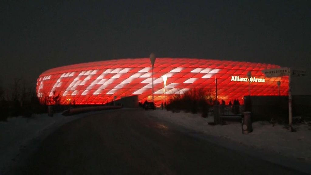 أضاء نادي بايرن ميونخ ملعبه”أليانز أرينا” تكريمًا لنجمه الأسطوري فرانز بيكنباور مساء الثلاثاء.