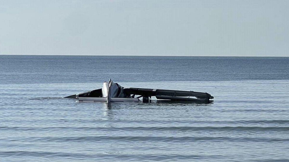 وتُظهر الصور الطائرة في البحر على بعد حوالي 100 متر من الشاطئ، وبدا جسم الطائرة منشطرًا إلى نصفين.