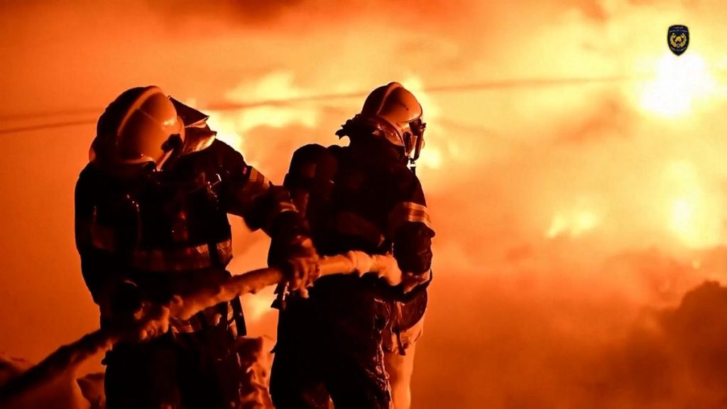 تعرض خمسة عشر رجل إطفاء لإصابات طفيفة أثناء عملهم على احتواء الحريق.