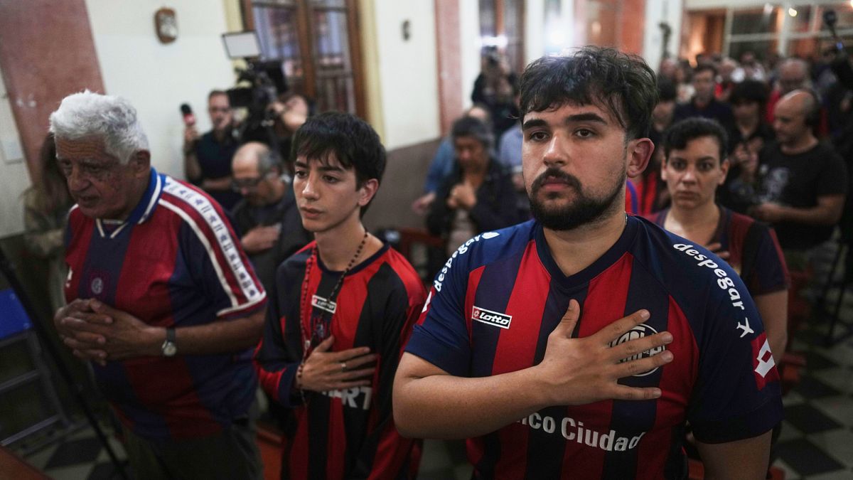 تجمع مشجعو نادي سان لورينزو الأرجنتيني لكرة القدم في كنيسة في بوينس آيرس لتكريم ذكرى البابا فرنسيس، الذي كان من أتباع الفريق على مدى سنوات طويلة.