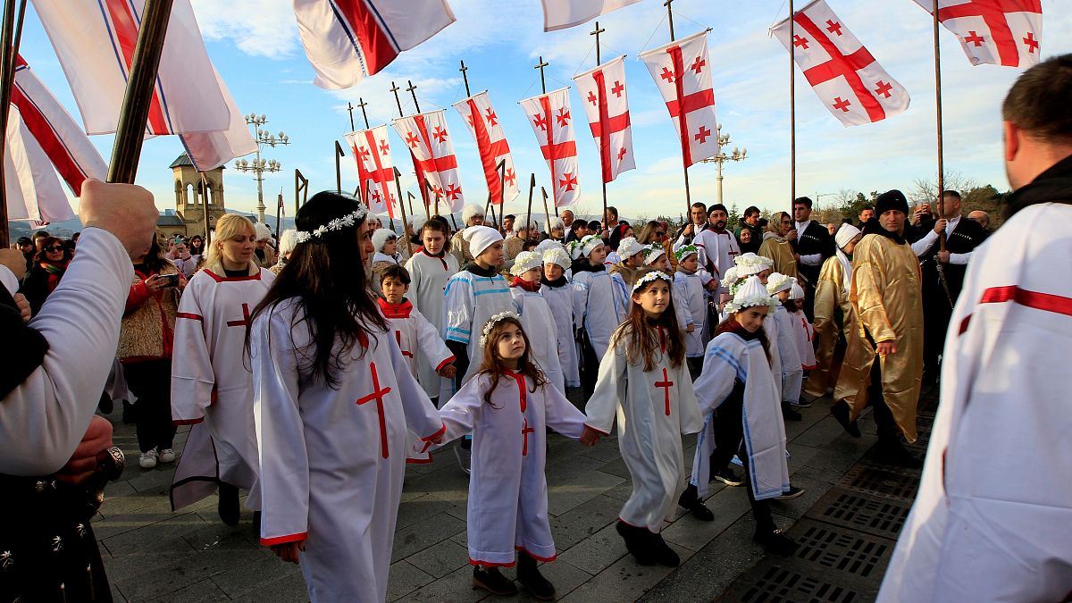 بمناسبة يوم عيد الميلاد الأرثوذكسي، سار المئات في شوارع تبليسي الأحد، للمشاركة في موكب تقليدي يُدعى “أليلو”. وهو طقس ديني يشهد مسيرة الآلاف من الأشخاص في انسجام تام في الشوارع، وهم يرتدون ملابس خاصة ويحملون الأعلام الجورجية والصلبان والأيقونات الأخرى.