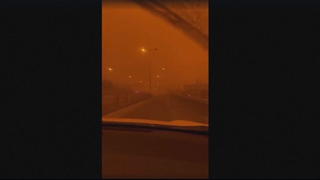 حملت رياح قوية غبار الصحراء الكبرى فوق البحر المتوسط، فتلونت سماء كريت بالأحمر والأصفر. مشاهد من ريثيمنو وجوريوپولي تُظهر شمسا باهتة وأجواء غريبة تكاد تبدو مريخية.