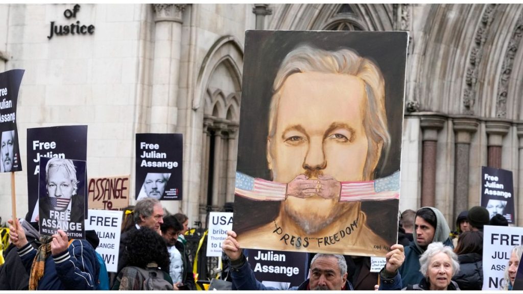 وتجمع أنصار جوليان أسانج، الذي يواجه خطر الترحيل إلى الولايات المتحدة وعقوبة طويلة تصل إلى 175 عاما، خارج مبنى المحكمة في لندن تعبيرا عن دعمهم له.