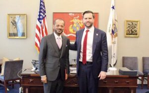 والجمعة، التقى وزير الخارجية العُماني بدر بن حمد البوسعيدي في البيت الأبيض بالعاصمة الأمريكية واشنطن، جيه دي فانس، نائب رئيس الولايات المتحدة الأمريكية، حيث تم استعراض مخرجات المفاوضات الأمريكية-الإيرانية غير المباشرة التي ترعاها سلطنة عُمان، والجهود الرامية للتوصل إلى اتفاق عادل ومستدام بشأن البرنامج النووي الإيراني وضمان طابعه السلمي.